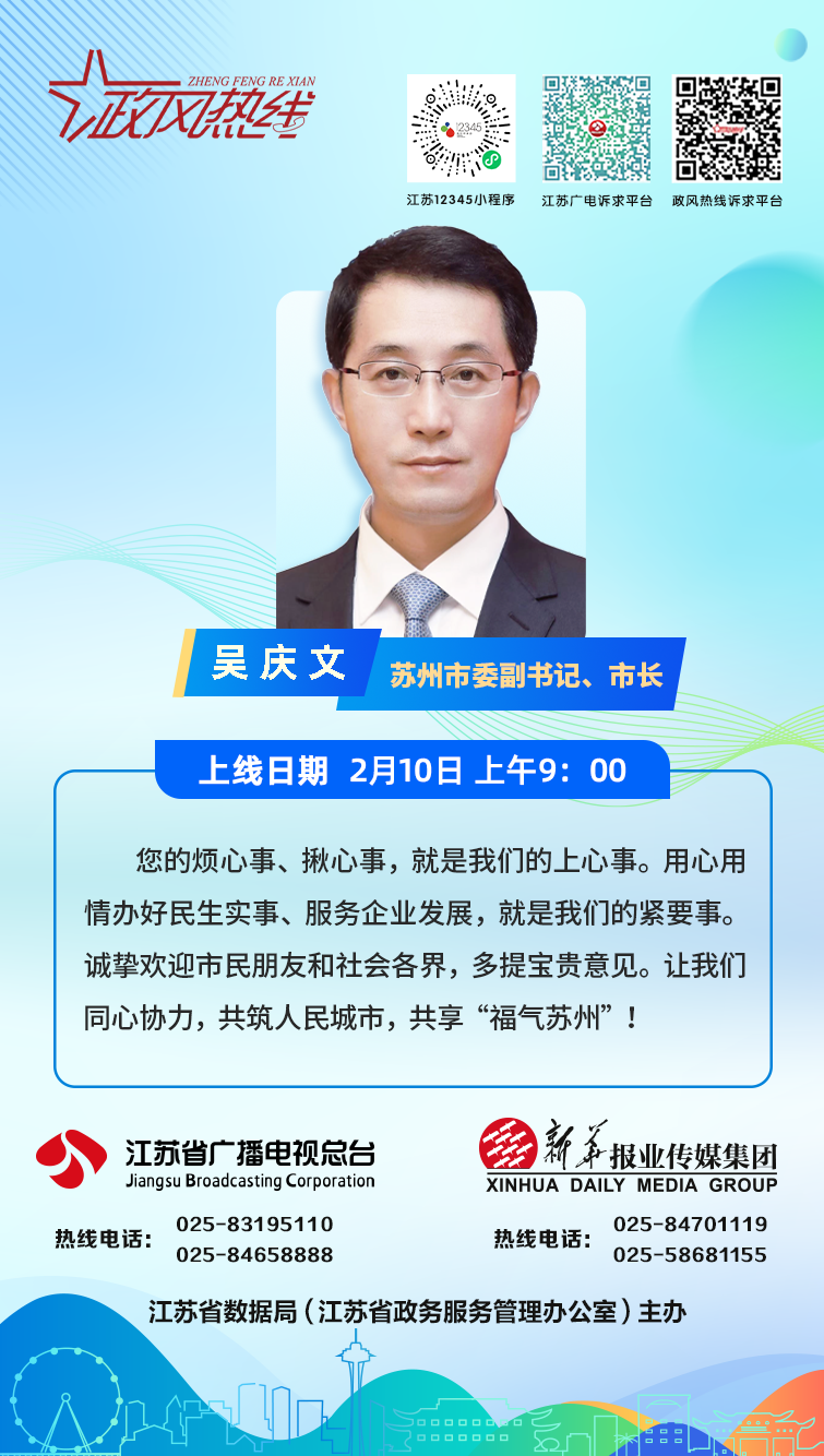 【预告】苏州市委副书记、市长吴庆文将走进政风热线