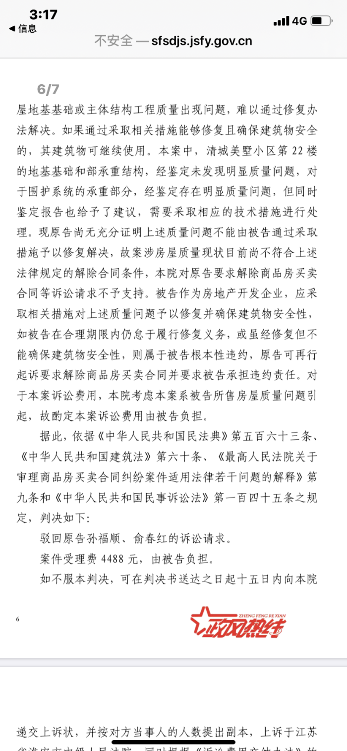 记者了解到,2022年,据淮安经济技术开发区人民法院判决,开发商需在合理期限内对清城美墅小区商铺进行维修,若经修复仍不能确保建筑物安全性,业主可再起诉要求解除商品房买卖合同。