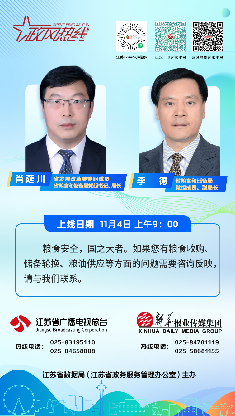 紫牛新闻客户端、中国江苏网、江苏政风热线网、江苏新闻频道、江苏新闻广播南京地区FM93.7、苏南地区FM95.3同步进行直播。同时,新华日报、江苏政风热线头条号、问政江苏微信公众号等也将第一时间发布相关报道。