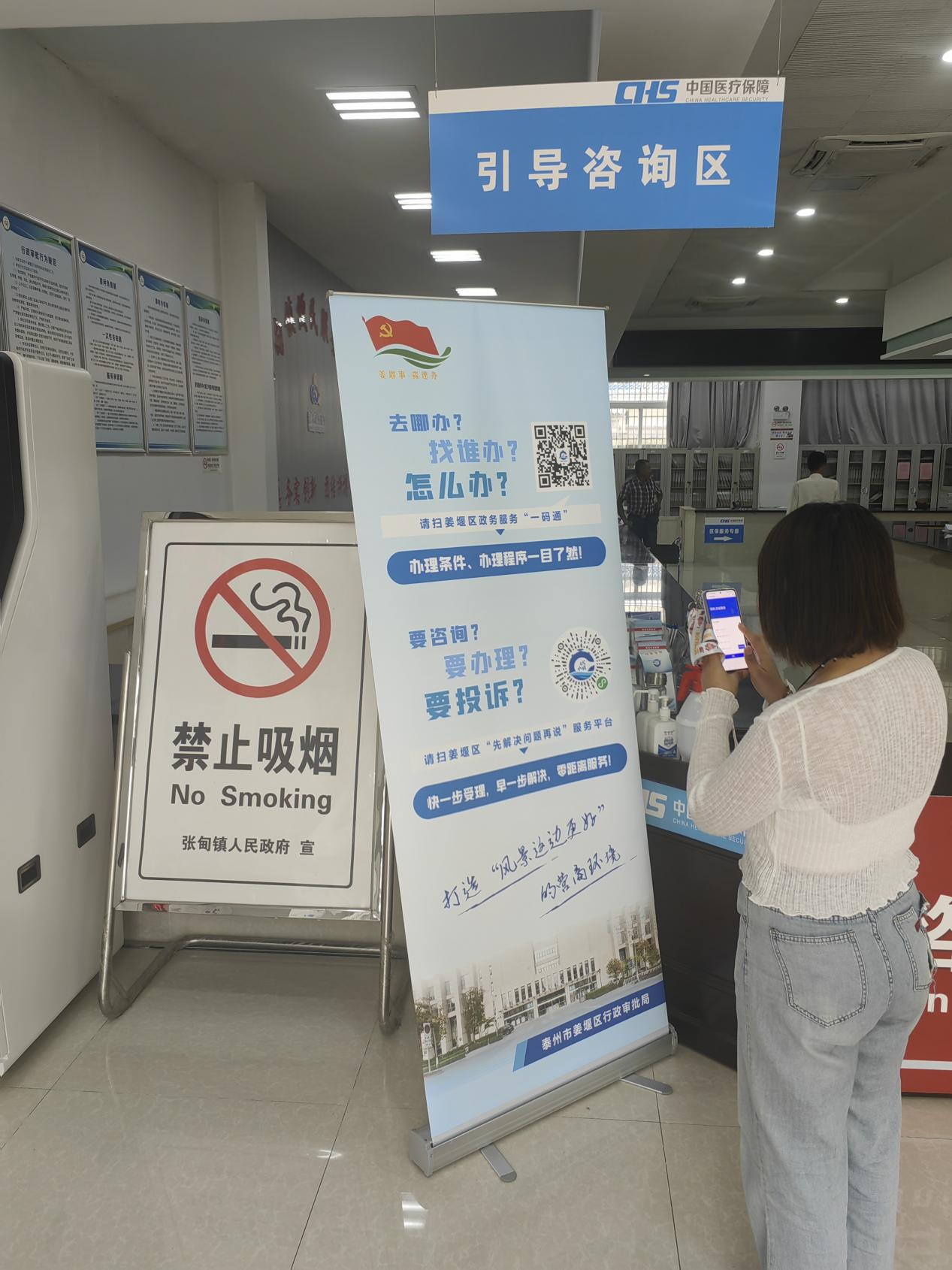 2023年以来,姜堰区行政审批局依托区级政务服务大厅主阵地,按照大厅布局设立不动产、公安、企业开办及高层次人才、项目审批、人社医保、其他6个板块,28个驻场窗口的368项事项及镇街个体工商户、食品经营许可等高频审批服务事项“一码通查”,细化办理地点、流程、所需材料、样表、联系方式等关键信息要素,便于企业群众事前查看,切实提升办事效率。坚持“一事一码”原则,颗粒化应用场景,将不动产领域15项权利类型、108个登记业务类型、306个服务场景进行“一对多”关联,对108个登记业务类型进行赋码,做到“一事一码”“一码全联”。聚焦群众参保、医保报销需求,打造医保领域子码,归集药店、医疗机构、电子凭证查询等12类查询二维码,公示异地就医、参保大厅、生育津贴等8类高频医保业务办事指南二维码,实现“码”上阅知。